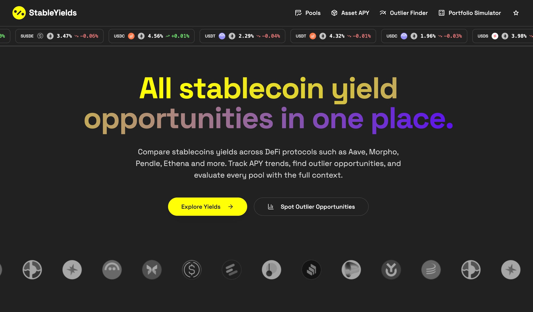 Stable Yields surfaces and benchmarks the data. It does not eliminate the need for your own due diligence. Every pool carries risk and no tool removes that. What it does is cut the time it takes to find the right questions.